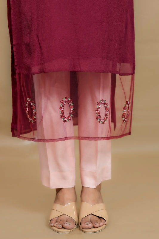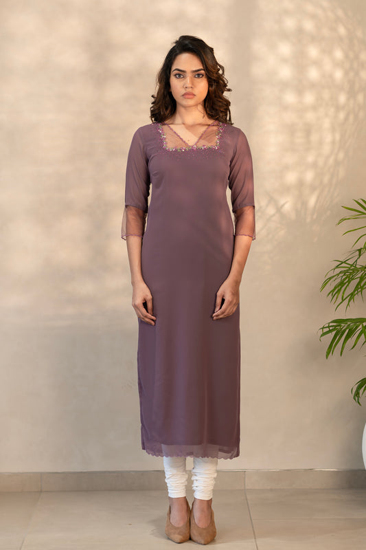 Paris Grape Shaded Georgette Slitted Party wear kurti with Yoke embellishments