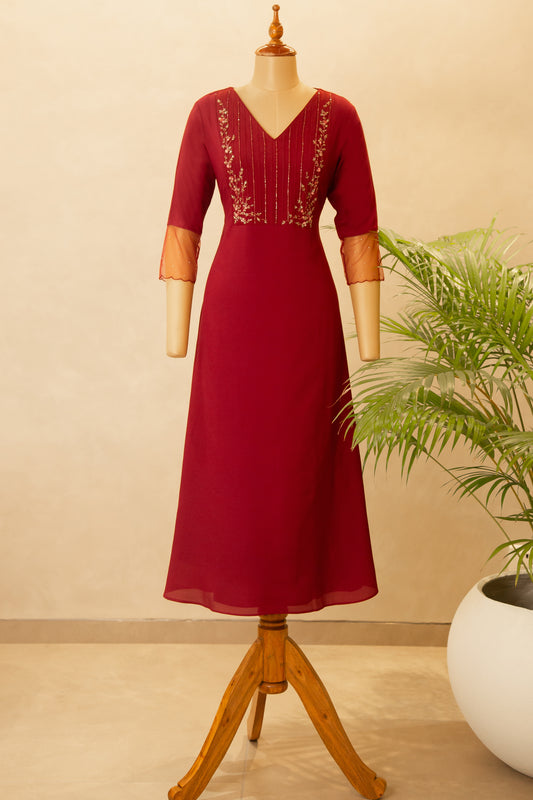 PARIS RED EMBROIDERED PARTYWEAR KURTI