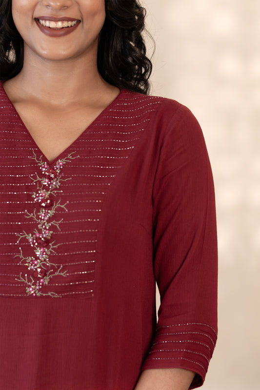 PARIS SCARLET RED PINTUCKED EMBILLISHED KURTI
