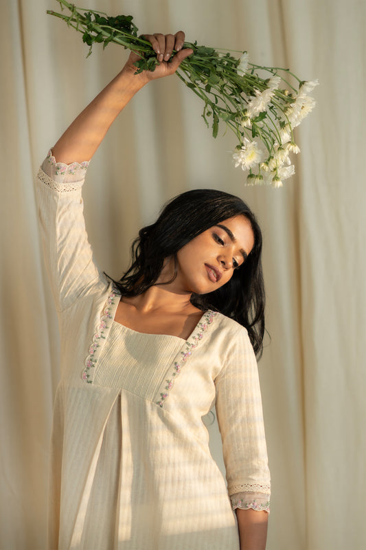 PARIS OFF WHITE KURTI WITH BLACK STRIPES