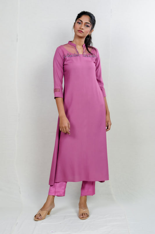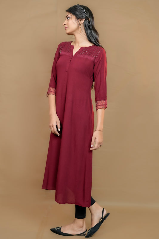Paris Rayon Kurti with Hand Embroidered Yoke