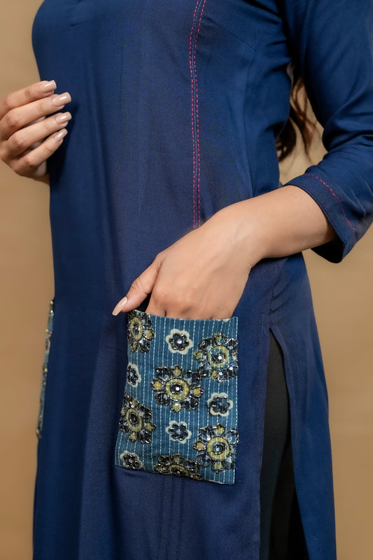 Sold outPARIS BLUE AJRAKH POCKET KURTI