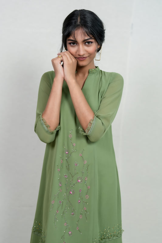 Sold outPARIS GREEN PARTY WEAR KURTHI