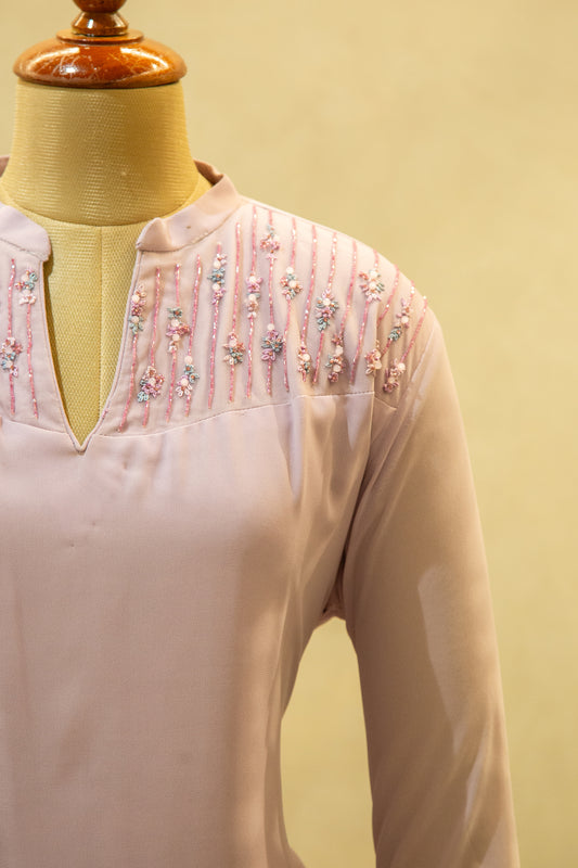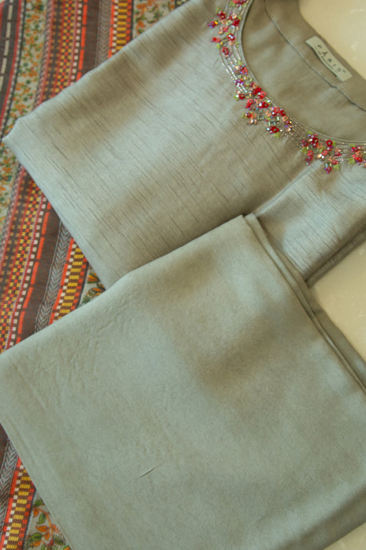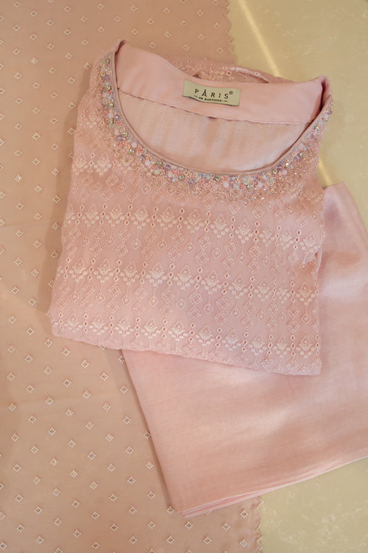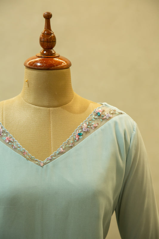 Powder Blue Faux Georgette Semi Stitched Salwar Set