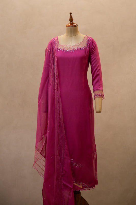 Net Embroidered Georgette Semi Stitched Salwar Set